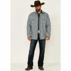 Best deal 🌟 Cody James Men’s Bonded Small Plaid Long Sleeve Snap Western Flannel 👚 Shirt Navy 😍