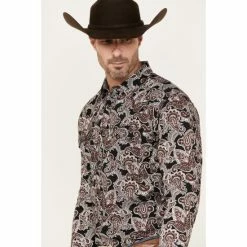Best deal ✔️ Cody James Boys’ Linear Paisley Print Long Sleeve Western Snap 👕 Shirt Charcoal 🌟
