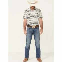 Promo 💯 Cody James Men’s Chute Aztec Dobby Print Short Sleeve Snap Western 👚 Shirt – Big White 🎉