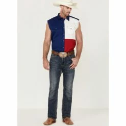 Best Pirce 🎁 Cody James Men’s Texas Flag Bubba Sleeveless Snap Western 👚 Shirt Red/white/blue 🛒