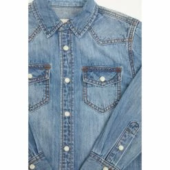 Flash Sale ⌛ Cody James Boys’ Foothill Denim Long Sleeve Pearl Snap Western 👕 Shirt Medium Wash 🔥
