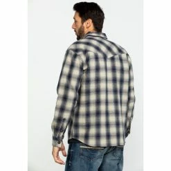Best deal 🌟 Cody James Men’s Bonded Small Plaid Long Sleeve Snap Western Flannel 👚 Shirt Navy 😍