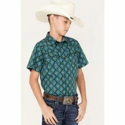 Cheapest โจ Cody James Boys’ Diamond Geo Print Short Sleeve Western Snap ๐ Shirt Dark Green ๐