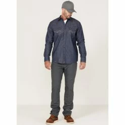 Outlet โญ Cody James Men’s FR Denim Mount Vernon Long Sleeve Snap Work ๐ Shirt Indigo ๐