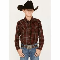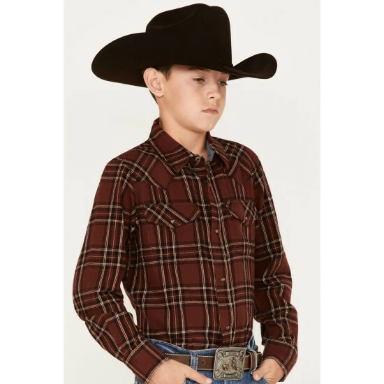 Deals 💯 Cody James Boy’s Plaid Print Long Sleeve Snap Flannel 👕 Shirt Rust Copper 👏