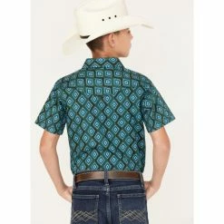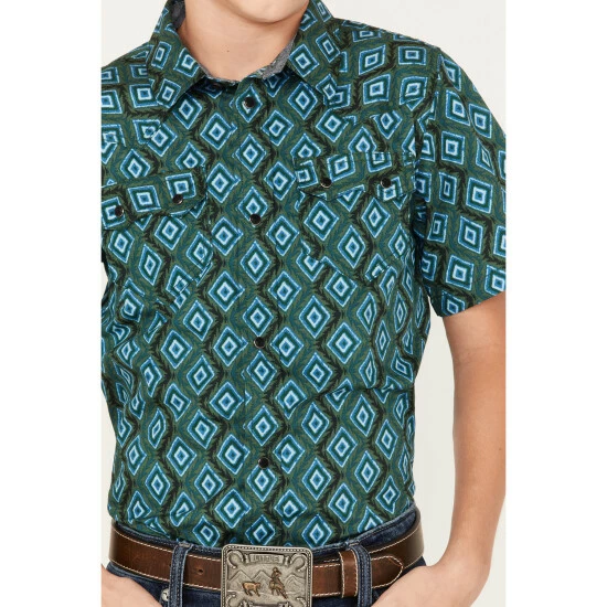 Cheapest โจ Cody James Boys’ Diamond Geo Print Short Sleeve Western Snap ๐ Shirt Dark Green ๐