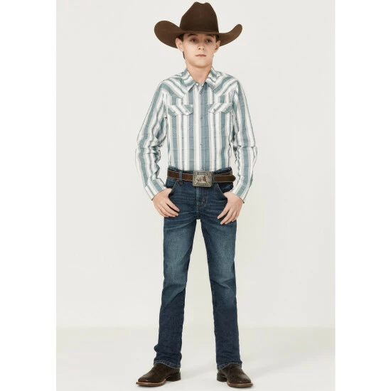 Best Pirce ๐ Cody James Boys’ Dobby Stripe Long Sleeve Western ๐ Shirt Cream ๐