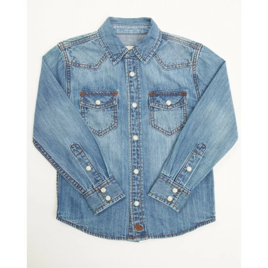 Flash Sale โ Cody James Boys’ Foothill Denim Long Sleeve Pearl Snap Western ๐ Shirt Medium Wash ๐ฅ