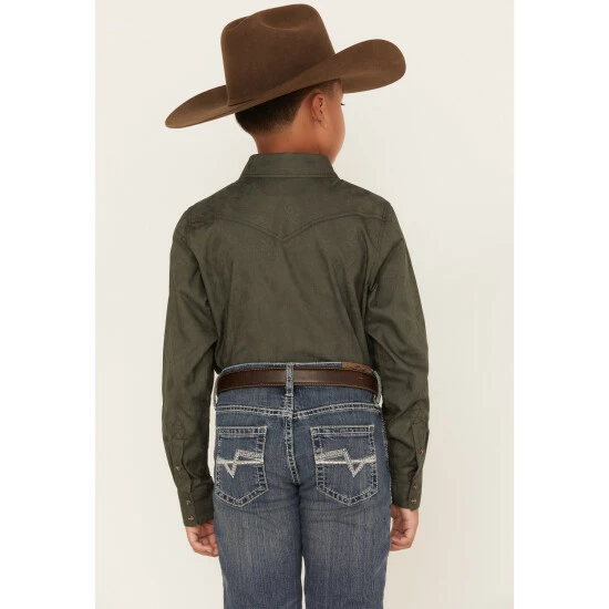 Best deal ⭐ Cody James Boys’ Jacquard Long Sleeve Snap Western 👕 Shirt Olive ⭐