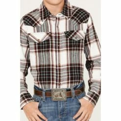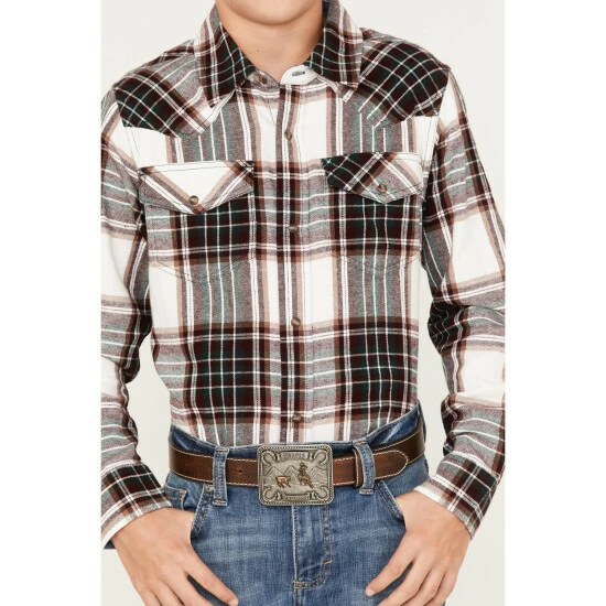 Buy ๐ Cody James Boys’ Long Sleeve Plaid Print Flannel ๐ Shirt Cream ๐ฅ