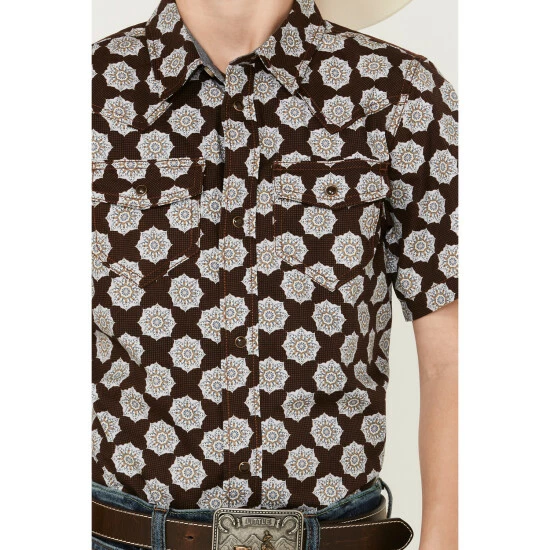 New ๐ Cody James Boys’ Medallion Print Short Sleeve Snap Western ๐ Shirt Multi ๐งจ