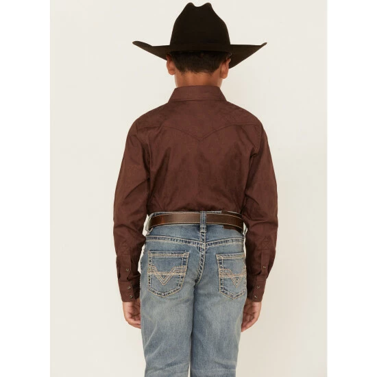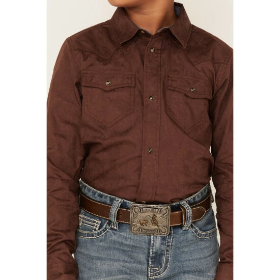 Hot Sale ๐ Cody James Boys’ Paisley Jacquard Long Sleeve Snap Western ๐ Shirt Rust Copper ๐