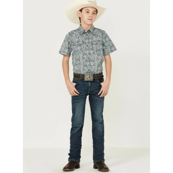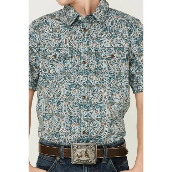 Deals โ๏ธ Cody James Boys’ Paisley Print Short Sleeve Western ๐ Shirt Blue ๐