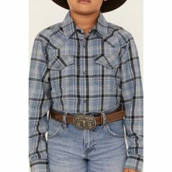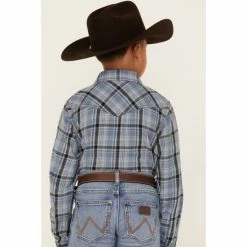 Outlet ⌛ Cody James Boys’ Plaid Print Long Sleeve Snap Western Flannel 👚 Shirt Blue 😀