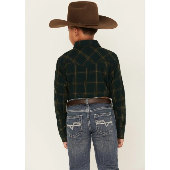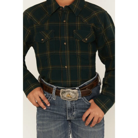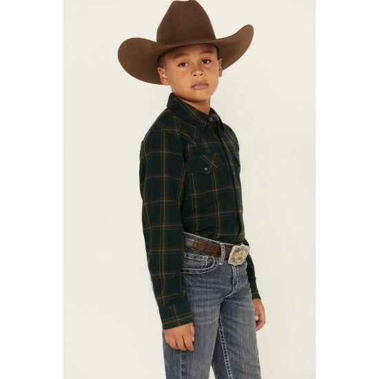 Buy ๐ฏ Cody James Boys’ Plaid Print Long Sleeve Snap Western Flannel ๐ Shirt Olive โค๏ธ