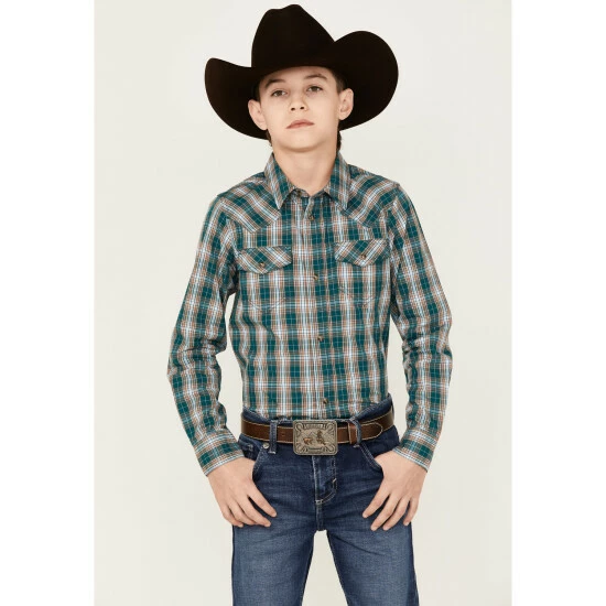 New ๐ Cody James Boys’ Plaid Print Long Sleeve Snap Western ๐ Shirt Blue ๐ฅ