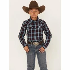 Discount 🌟 Cody James Boys’ Plaid Print Long Sleeve Snap Western 👚 Shirt Red 🥰