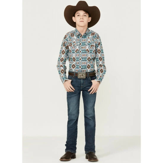 Best Sale ๐ Cody James Boys’ Southwestern Great Plains Print Long Sleeve ๐ Shirt Turquoise ๐ฅฐ