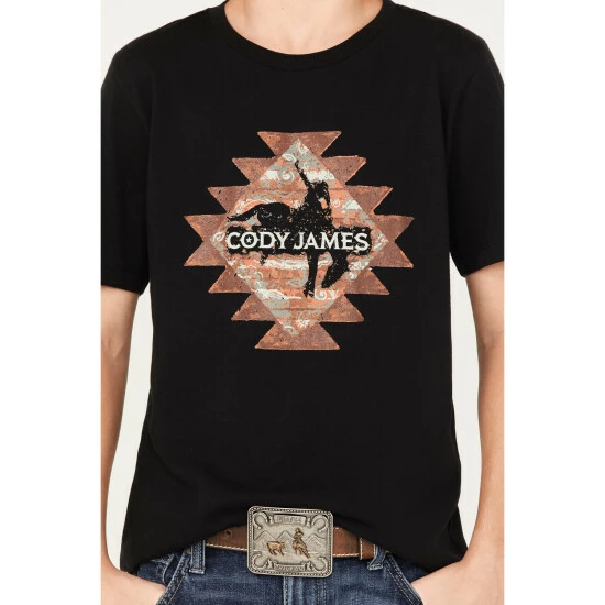 New 👍 Cody James Boys’ Southwestern Logo Graphic T-Shirt Black 🔥