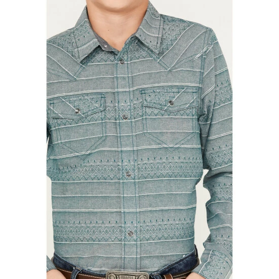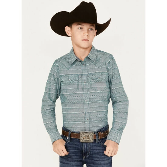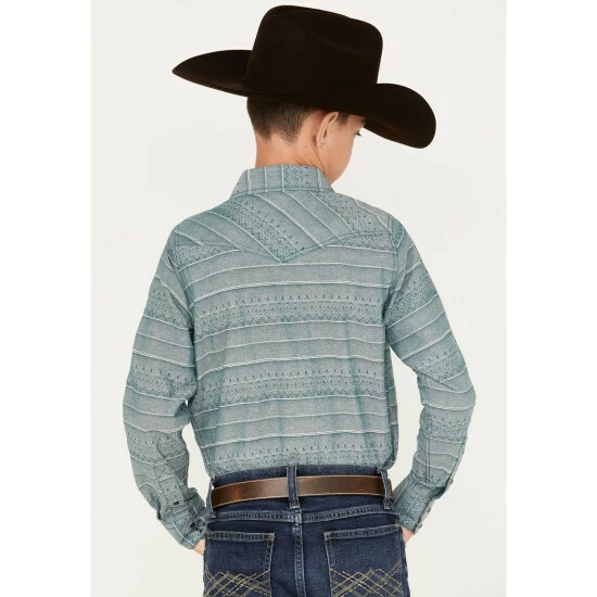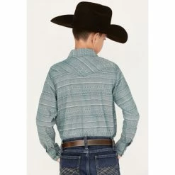 Wholesale 🎉 Cody James Boys’ Stripe Print Long Sleeve Snap Western 👚 Shirt Blue 🔔