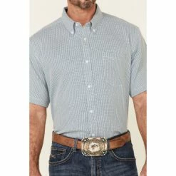 Buy ❤️ Cody James Core Men’s Clovis Dobby Geo Print Short Sleeve Button-Down Western 👚 Shirt Blue 😀