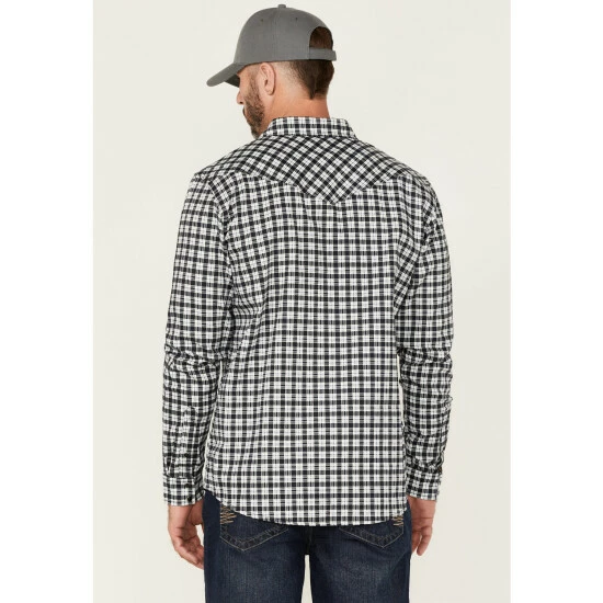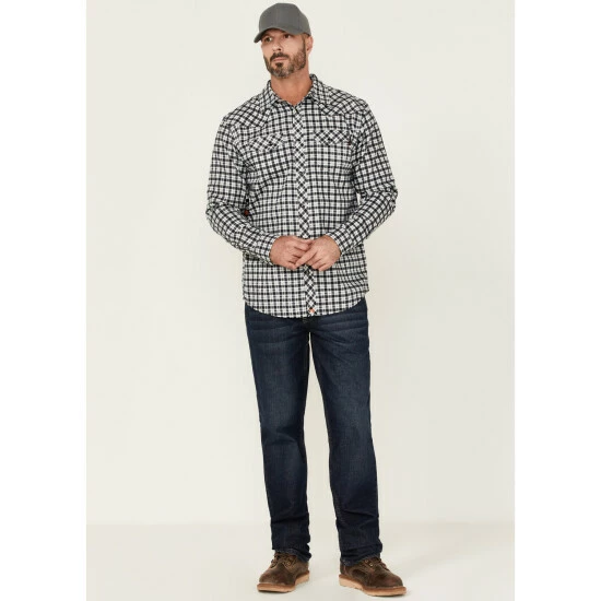 Promo ๐ Cody James FR Check Plaid Long Sleeve Snap Work ๐ Shirt For Men Dark Blue โ