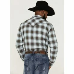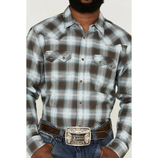 Brand new โ๏ธ Cody James Men’s Background Large Ombre Plaid Western ๐ Shirt Brown ๐