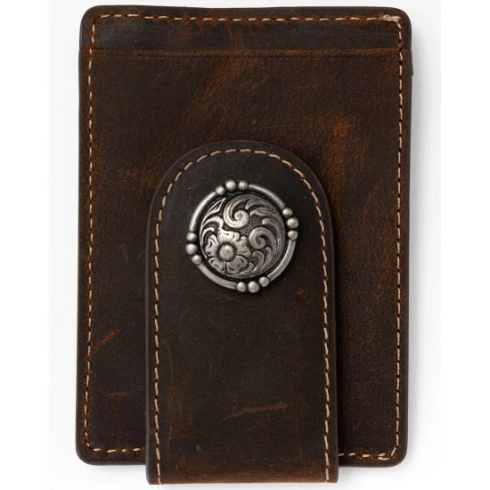 - Silver concho detailing on money clip