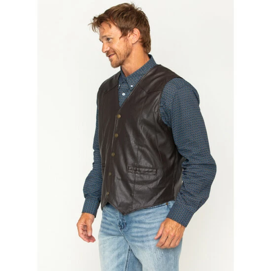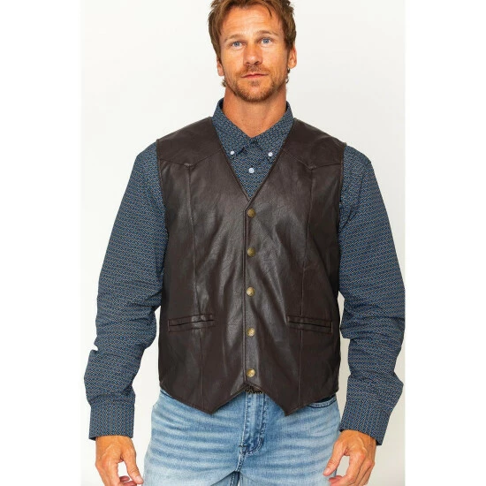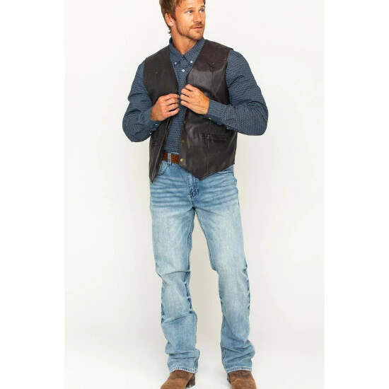 Put the finishing touches on the perfect western outfit with this Men’s Deadwood Vest from Cody James. The man-made leather is soft and comfortable and adds just the right amount of warmth and style. The tailored design gives this vest a great fit to make this the perfect basic for your closet. This vest will look great over a solid long sleeve shirt with a blazer or by itself. You will be ready to hit the town in western style in this classic western vest.