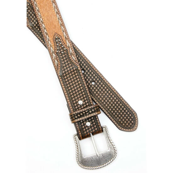 New ๐ Cody James Men’s Brown Hair-On Basketweave Studded Leather Belt ๐