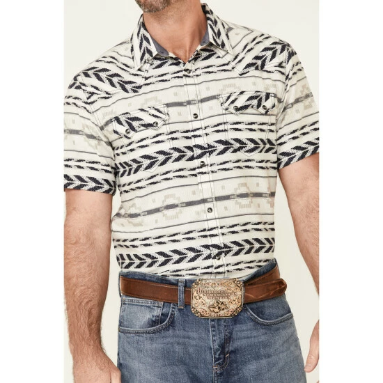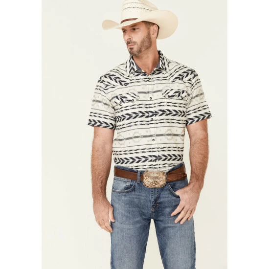 Promo 💯 Cody James Men’s Chute Aztec Dobby Print Short Sleeve Snap Western 👚 Shirt – Big White 🎉