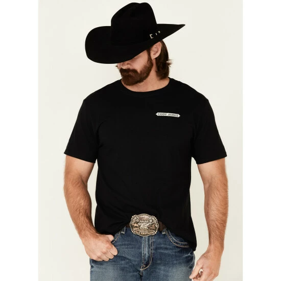 - “Cody James” small graphic on left chest