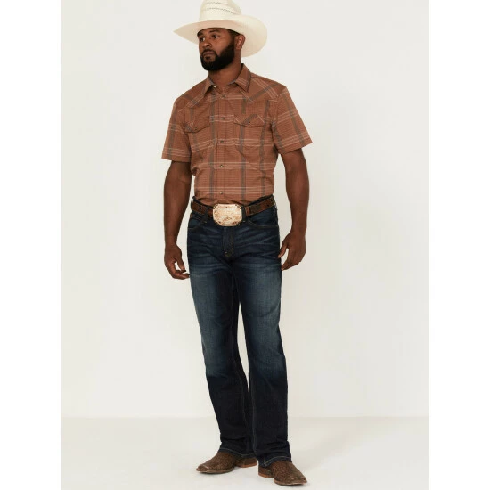 Best Sale ๐ฅฐ Cody James Men’s Easl End Large Plaid Short Sleeve Snap Western ๐ Shirt Brown ๐