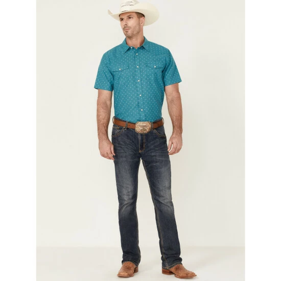 Outlet ๐คฉ Cody James Men’s Field Day Chambray Geo Print Short Sleeve Snap Western ๐ Shirt Blue โจ