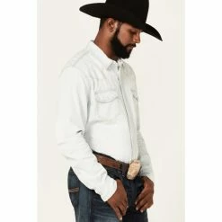 Promo ๐งจ Cody James Men’s Fort ๐ Summer Light Wash Long Sleeve Snap Western Denim ๐ Shirt ๐