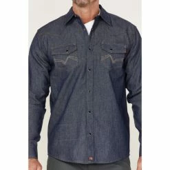 Outlet ⭐ Cody James Men’s FR Denim Mount Vernon Long Sleeve Snap Work 👕 Shirt Indigo 😉