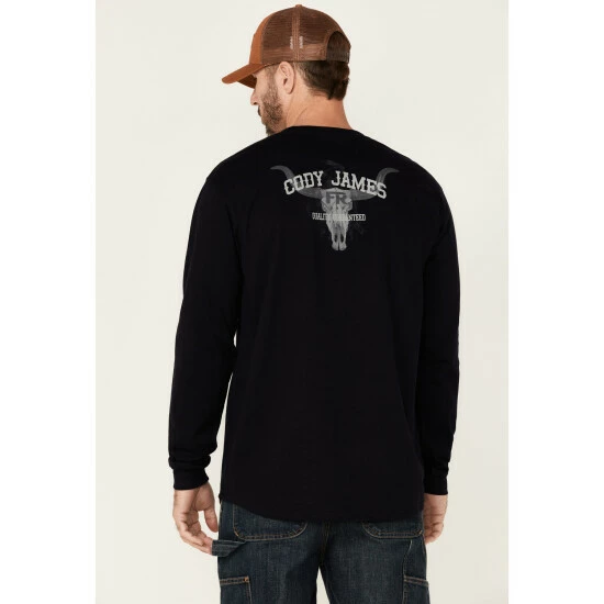 Discount โค๏ธ Cody James Men’s FR Navy Longhorn Graphic Long Sleeve Work T-Shirt ๐