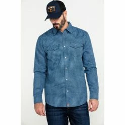 Deals ๐ Cody James Men’s FR Woven Plaid Long Sleeve Button Down Work ๐ Shirt Light Blue ๐