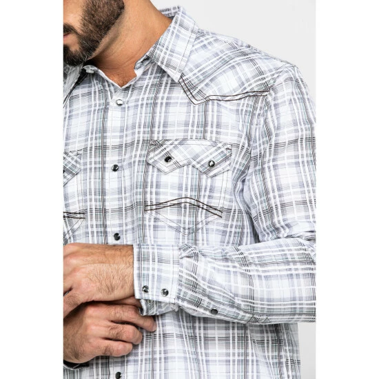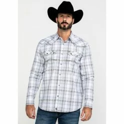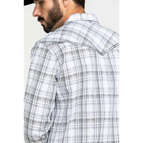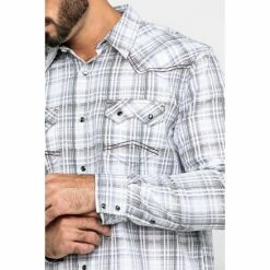 Hot Sale ๐ฅฐ Cody James Men’s Ghost Rider Plaid Long Sleeve Western ๐ Shirt Grey โ๏ธ