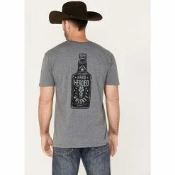 - Whiskey bottle with “Hard Headed Whiskey” graphic on back