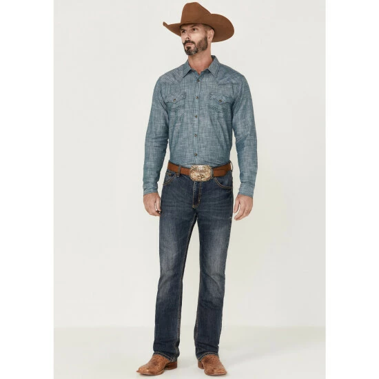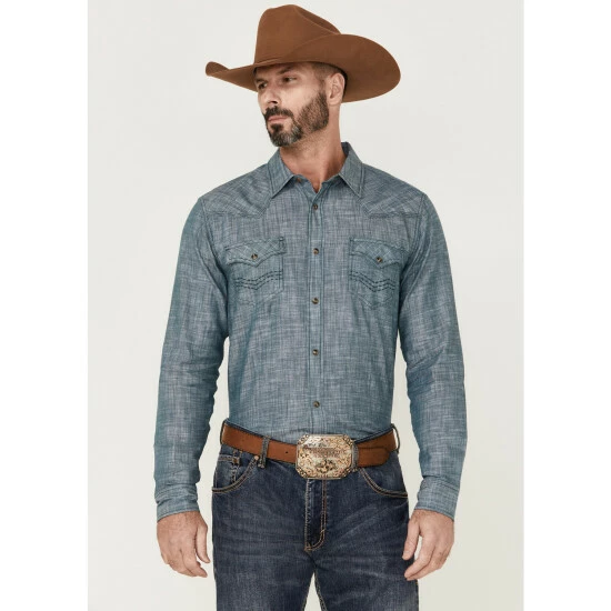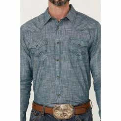Budget ๐คฉ Cody James Men’s Hotspot Solid Long Sleeve Snap Western ๐ Shirt Blue โจ