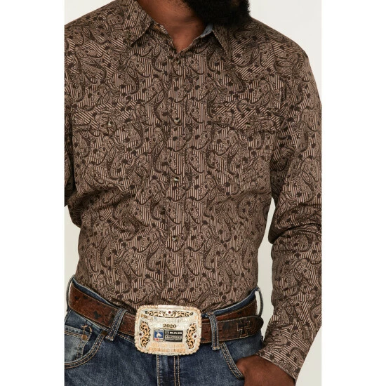 Best deal ๐ฅ Cody James Men’s Linear Paisley Print Long Sleeve Snap Western ๐ Shirt Brown ๐งจ