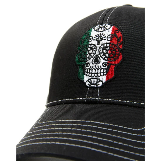 Brand new ๐ฏ Cody James Men’s Mexico Flag Sugar Skull Embroidered Mesh-Back Ball Cap Black ๐งจ