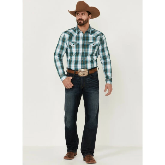 Cheap โค๏ธ Cody James Men’s Mineral Large Plaid Long Sleeve Snap Western ๐ Shirt – Big & Tall Blue ๐งจ