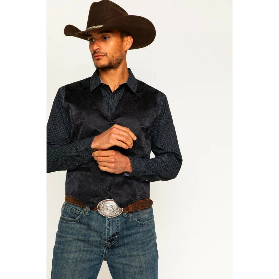 Brand new โ Cody James Men’s Paisley Print Jacquard Button Front Vest Black ๐