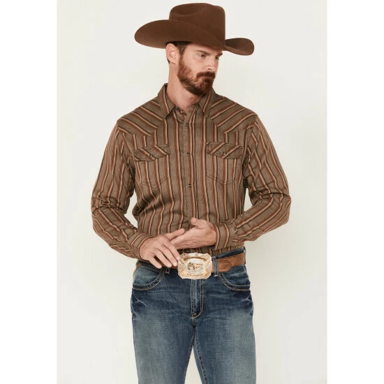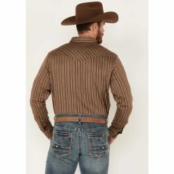 Cheap ๐ฅ Cody James Men’s Railway Striped Long Sleeve Snap Western ๐ Shirt Brown โญ