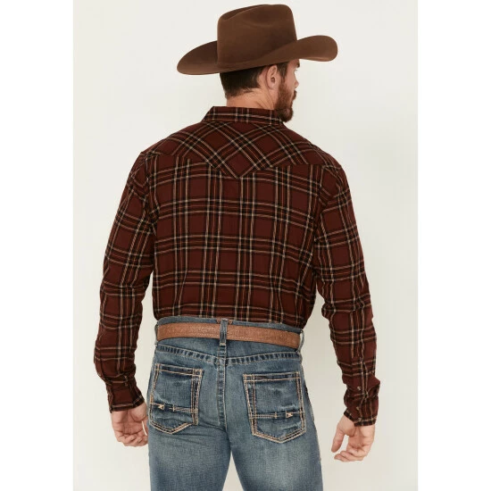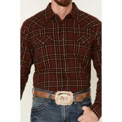 Hot Sale ๐คฉ Cody James Men’s Rusty Spur Plaid Print Long Sleeve Snap Western Flannel ๐ Shirt Rust Copper โ