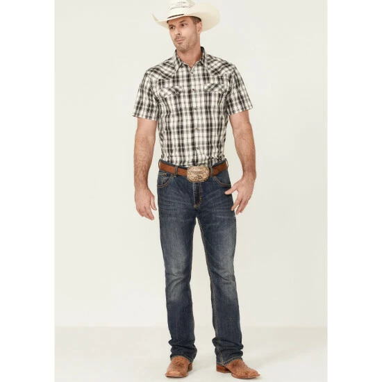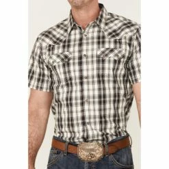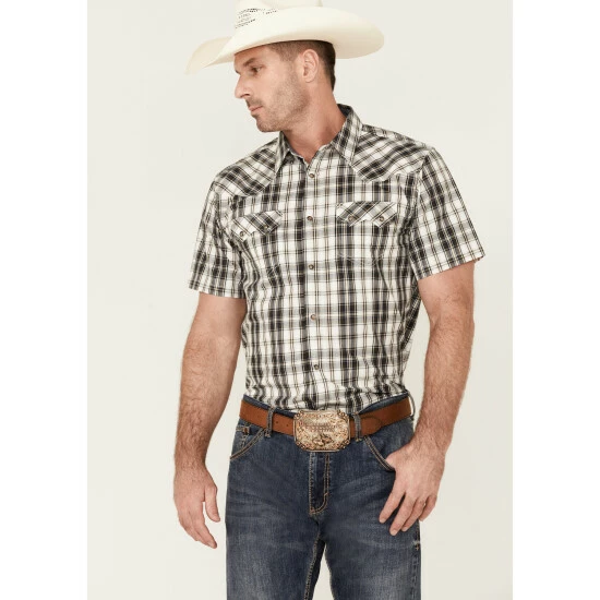 Outlet ๐งจ Cody James Men’s Statement Dobby Plaid Short Sleeve Snap Western ๐ Shirt White โญ
