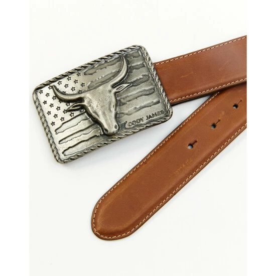 Outlet ๐ Cody James Men’s Steer Head Americana Flag Buckle Belt Brown ๐