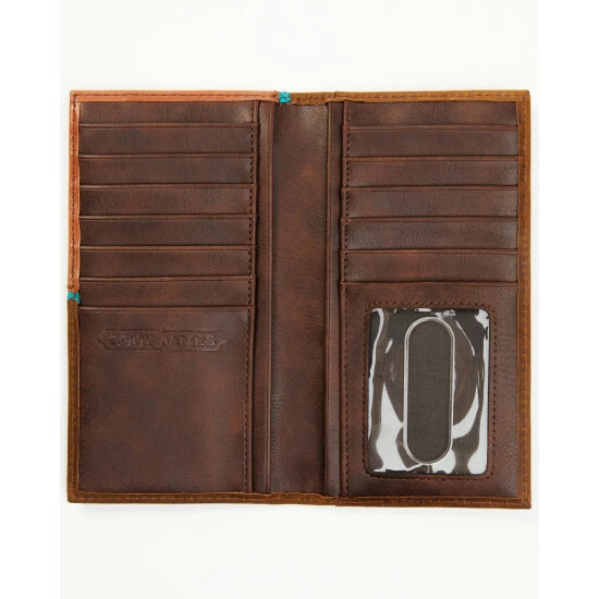 Outlet 😀 Cody James Men’s Turquoise Underlay & Brown Tooled Rodeo Wallet 🎁